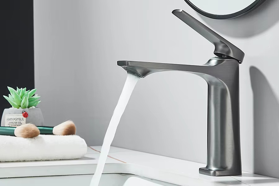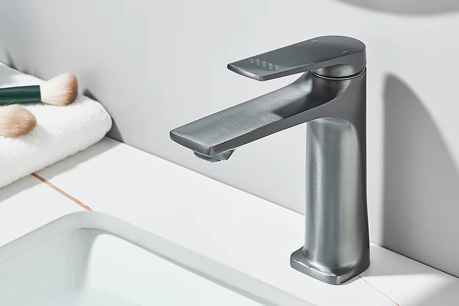 Nowoczesna bateria umywalkowa z perlatorem.