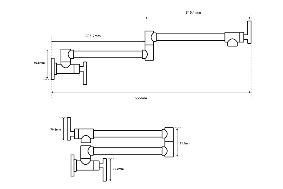 Bateria kuchenna przegubowa ścienna Seria 2 Czarna B
